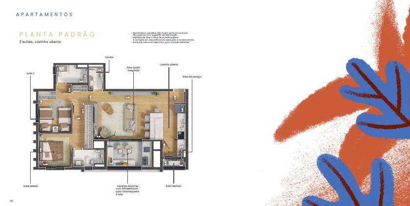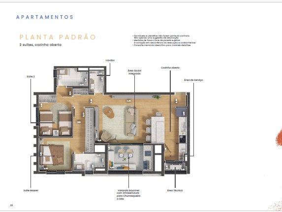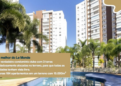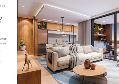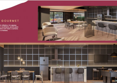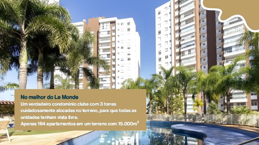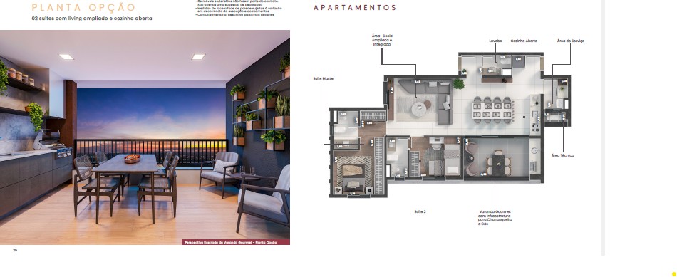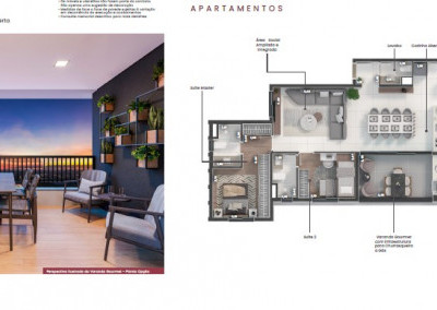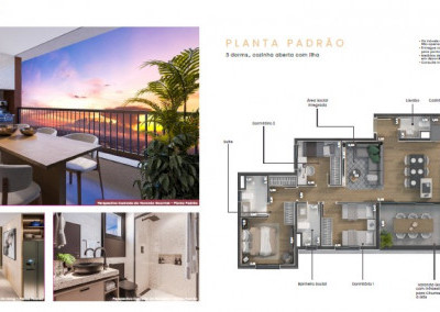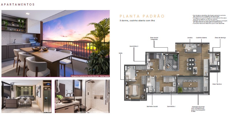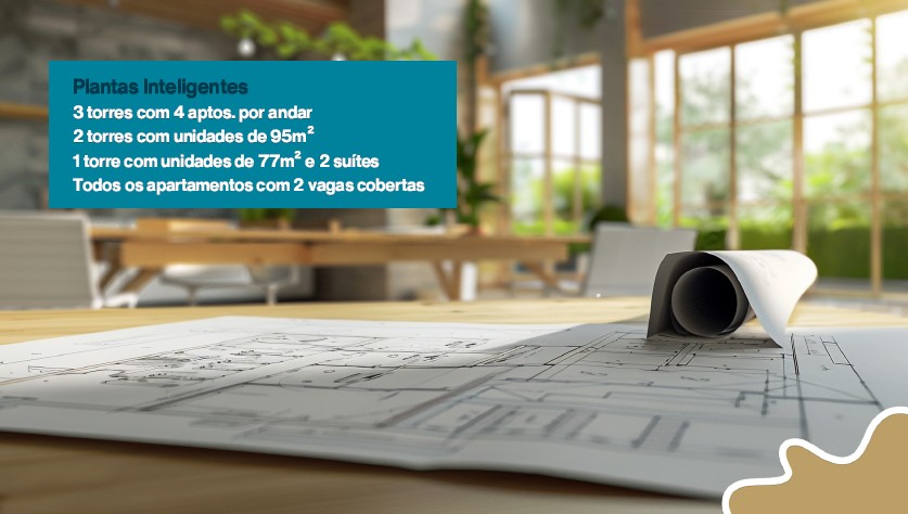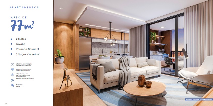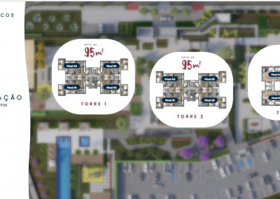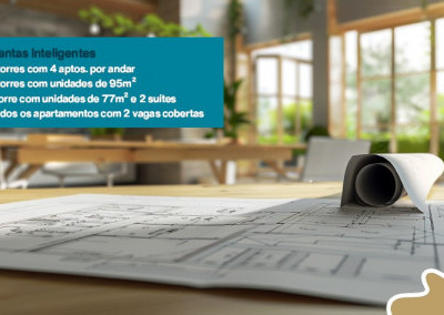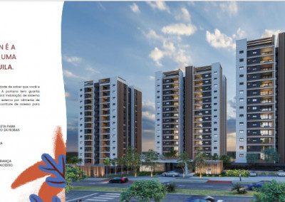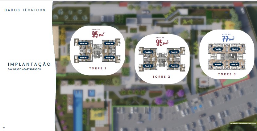 Condomínio de apartamentos, 3 torres de alto padrão com 77 m2, 2 suítes, lavabo e 2 vagas cobertas, churrasqueira a gás (infra preparada), ar condicionado (infra preparado), recarga para carro elétrico, fechadura digital, varanda gourmet. Apartamentos com 95 m2, 3 dormitórios, 1 suíte, lavabo e 2 vagas cobertas, churrasqueira a gás (infra preparada), água quente nas torneiras, ar condicionado (infra preparado), recarga para carro elétrico, fechadura digital. Varandas técnicas, varanda gourmet. Área de lazer com quadras poliesportivas, piscina infantil e adulto, bangalôs, academia ao ar livre, sala de ginástica, quadra de areia, brinquedoteca, mini mercado, horta, playground, bicicletário, vestiário para prestadores de serviços, espaço delivery, edifício garagem.